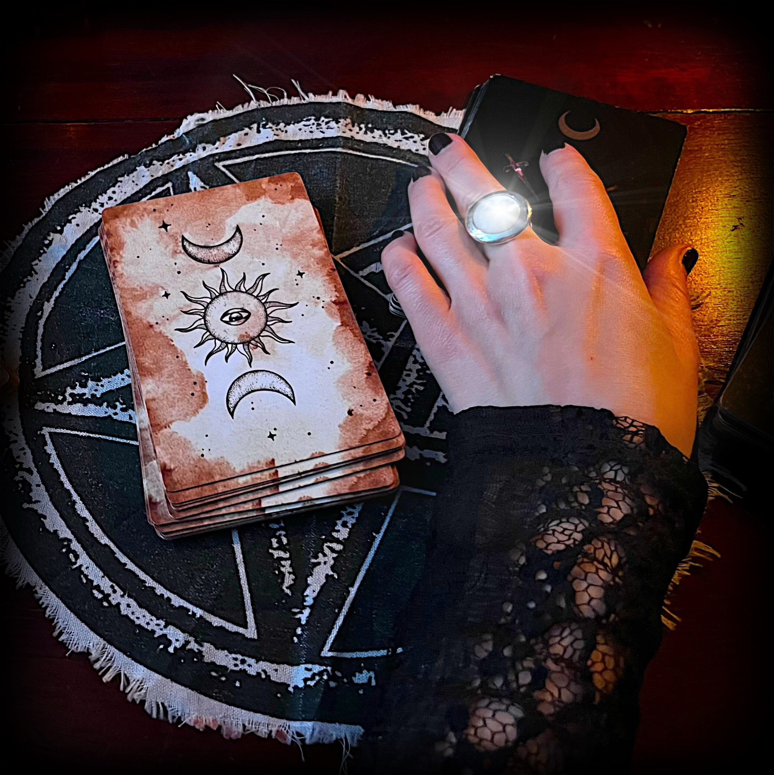 Mes tirages sont tous minutieusement ritualisés car je ne suis pas juste liseuse de cartes, je suis profondément sorcière et je voyage entre les différents côtés du voile des réalités du visible et de l’invisible. Parmi mes prestations, vous trouverez plusieurs tirages dont ceux de la catégorie divinatoire. Il s’agit de tirages qui ont pour vocation de révéler ce qui vous sera utile et qui ne font appel qu’à votre guidance propre pour trouver vos réponses.